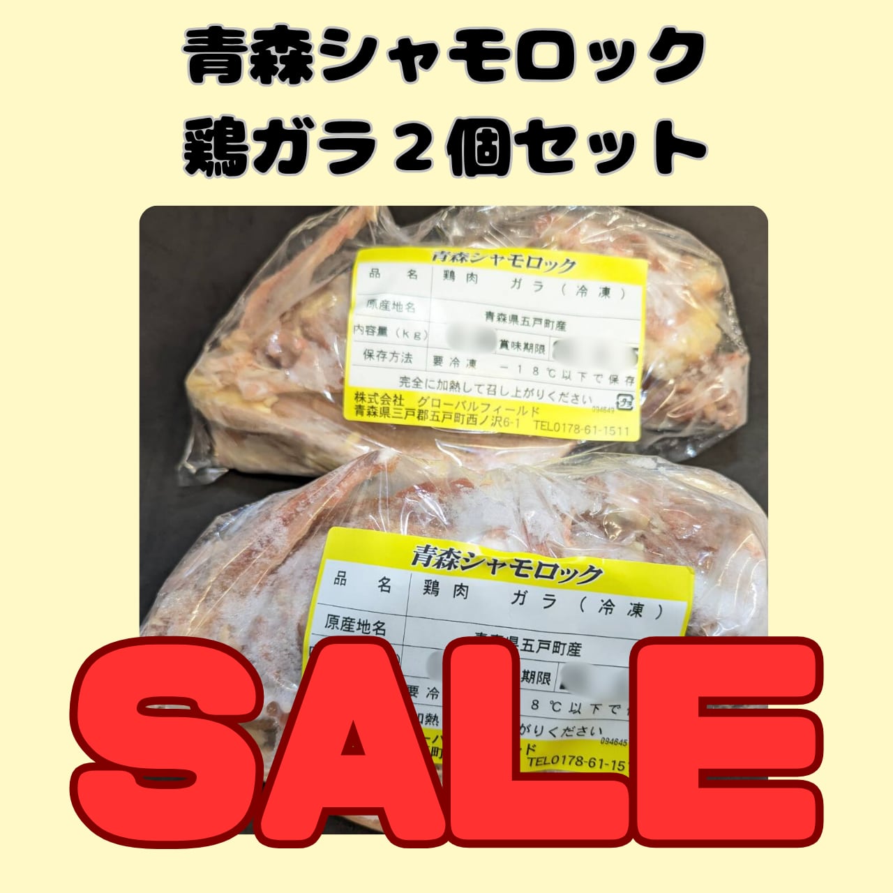 鶏ガラ1羽分を小分けで包装したものを2個入りにして、冷凍にて発送いたします。
